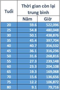 Bạn thử nhìn vào bảng biểu trên xem, ở tuổi 20, bạn có đâu đó tầm 500k giờ để sử dụng với cuộc đời của mình và đó là tài sản thật sự quý giá mà bạn có thể dành cho gia đình, xã hội, tìm kiếm niềm vui trong cuộc sống, ý nghĩa cuộc đời, v.v. Câu hỏi được đặt ra ở đây là: