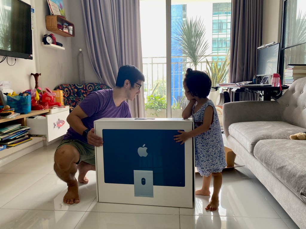 Sau khi lựa chọn từ Macbook Air – Macbook Pro – Mini thì mình quyết định hoặc iMac hoặc Mac Studio. Mình cũng đã cân nhắc Macbook Pro nhưng hiện tại mình không cần phải mang xách laptop cá nhân khi di chuyển, thậm chí cũng không phải đi công tác nên mình quyết định loại luôn dòng này ra khỏi danh sách. Còn hai thiết bị cuối cùng, nhưng thật ra không sản phẩm nào đáp ứng hoàn toàn tiêu chí của bản thân mình: