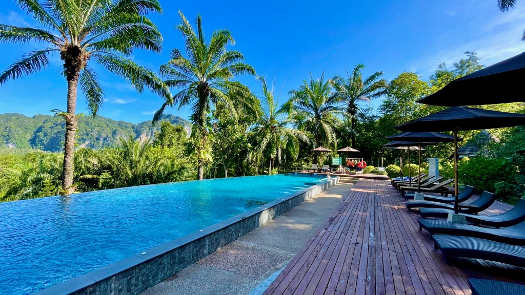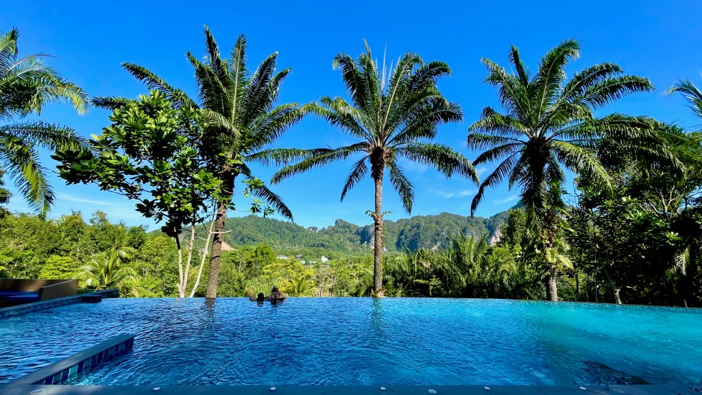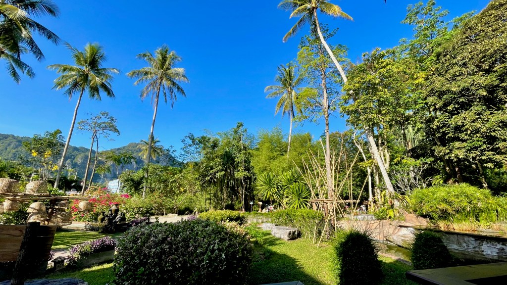 Khu du lịch Aonang Fiore mà gia đình mình lưu trú là một khu resort có chất lượng tốt. Gia đình mình ở một phòng có view nhìn rộng được cảnh quan khu vực xung quanh, chỉ tiếc là cây ở đây mọc khá cao nên góc nhìn phần nào đó bị ảnh hưởng. Tuy nhiên, với view này, nhà mình có thể dễ dàng bị đánh thức khi mặt trời dần mọc lên mỗi buổi sáng. Một trong những điểm thú vị là trong những ngày lưu trú ở đây, chúng tôi đã có dịp thấy được một gia đình khỉ với khỉ đầu đàn – khỉ mẹ và khỉ con đi ngang qua sau một ngày đi kiếm ăn.